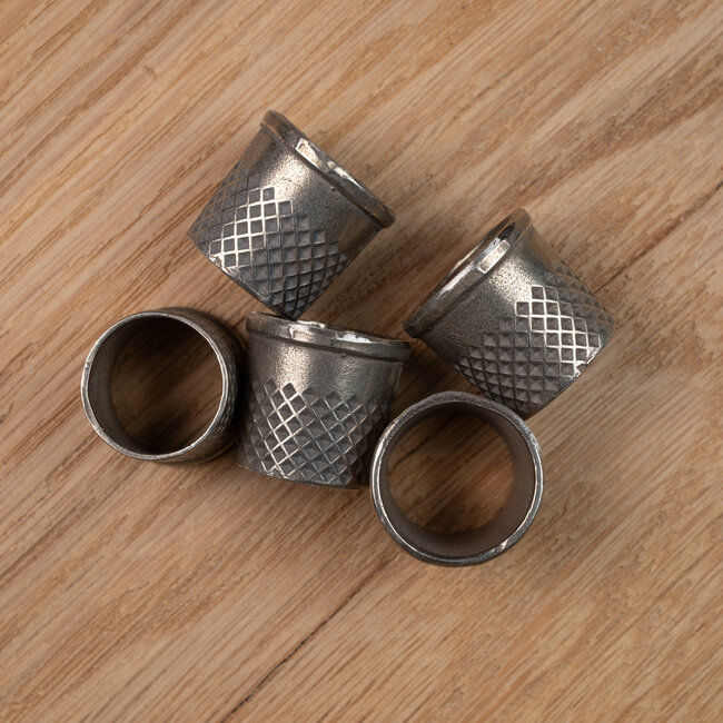 Made in England, these thimbles combine strength, precision, and comfort. The interior is smooth, and the indentations are deep to ensure a secure grip on the needle.