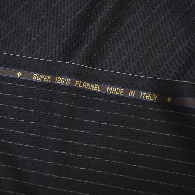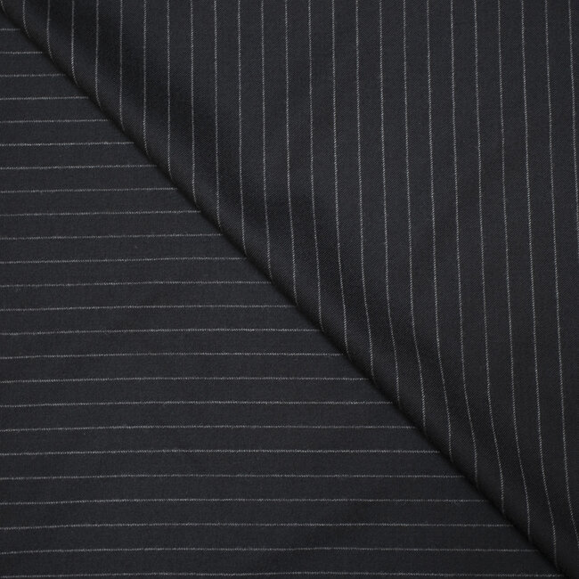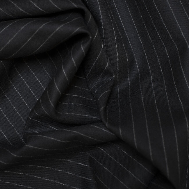 This fabric is sold in multiples of 50cm (0.50M). For 1 unit in the basket = 50cm If you take 3 units you will have a cut of 1m50.Super 120's dark grey flannel wool with pinstripes. Its pure wool composition gives flexibility to the drape of this fine combed fabric and its weight ensures an elegant drape.