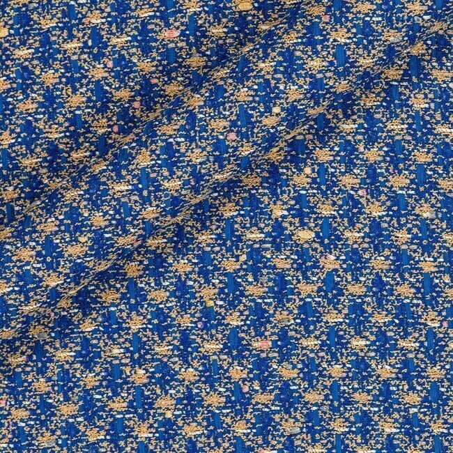 Medium blue and beige tweed with metallic fibres adding a subtle glow.