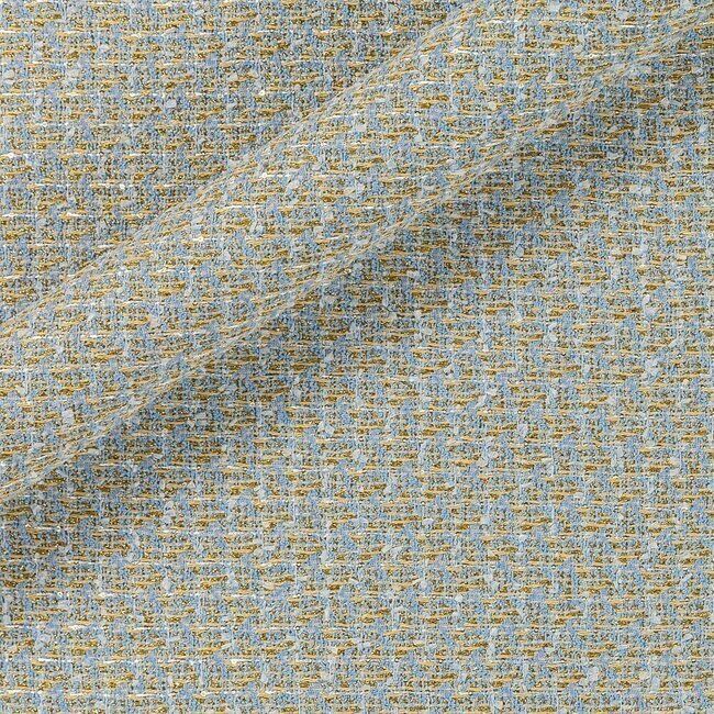 Elegant and modern light blu / gold tweed, made from a blend of exclusive fibres that make it perfect for special occasions where sophistication is essential.