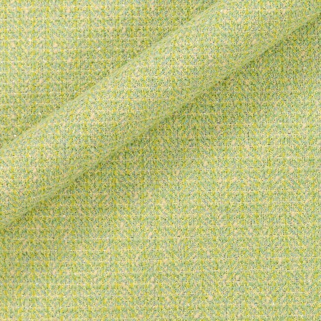 Elegant and modern light green/yellow tweed, made from a blend of exclusive fibres that make it perfect for special occasions where sophistication is essential.