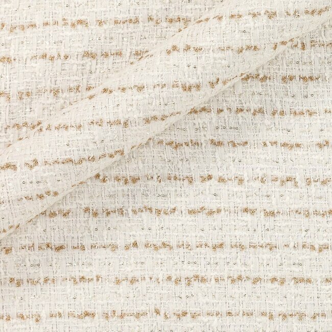 Pure white tweed with a uniform and refined texture. Discreetly metallic threads.